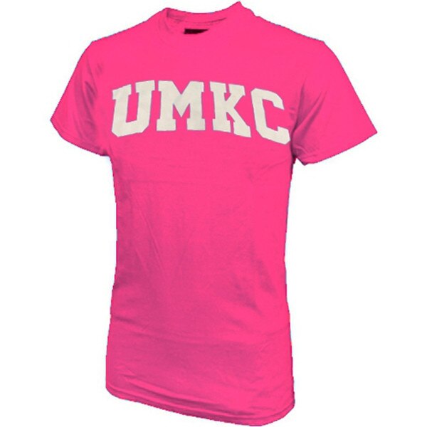 Bright hot pink tee with bold white arched “UMKC” lettering